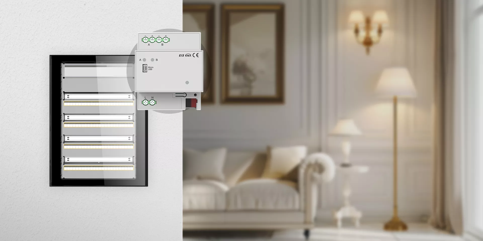 Akubela DALI brána je všestranné chytré zařízení KNX nabízející manuální ovládání, plánování a monitorování v reálném čase pro zvýšení energetické účinnosti a flexibility v systémech inteligentních domácností. |